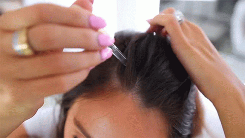 1. Déposez quelques gouttes directement sur le cuir chevelu, raie par raie.
